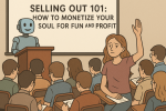👩🏫: Oh, you missed it? Tragic. That’s the cornerstone of the curriculum here in the Land of the Free Market. “Selling Out 101.” The final exam is just a LinkedIn post about “finding your brand voice.”